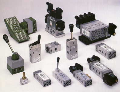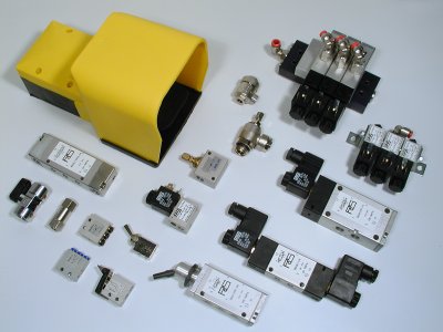 - Škrtící ventily, uzavírací ventily, logické prvky, zpětné ventily, rychloodvětrávací ventily, tlumiče hluku, ventily pro dvouruční spouštění, blokační ventily a speciální ventily